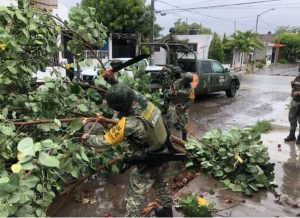 Durante el paso del Huracán “Lidia” por el estado de Colima, el personal del 88/o. Batallón de Infantería con sede en Tecomán, Colima, dio muestra de su compromiso con la sociedad y se hizo presente apoyando con el empleo de vehículos militares el traslado de personas que se encontraban en zonas de alto riesgo de inundación a las áreas seguras en los Municipios de Manzanillo e Ixtlahuacán, Colima, así mismo, en coordinación con Protección Civil y la C.F.E. retiraron árboles caídos debido a los fuertes vientos que presentaba el fenómeno meteorológico, algunos de los cuales se encontraban enredados entre los cables de energía eléctrica y otros obstaculizando tramos carreteros.